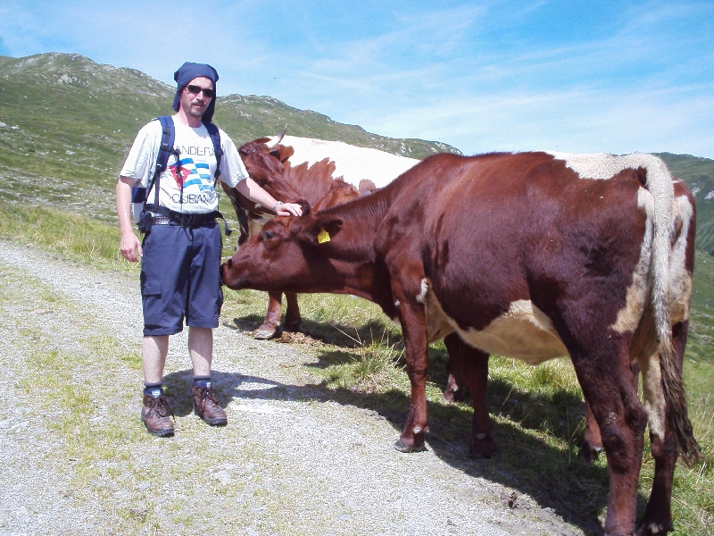 echts.Norbert kam gut mit den Alpenkühen aus.