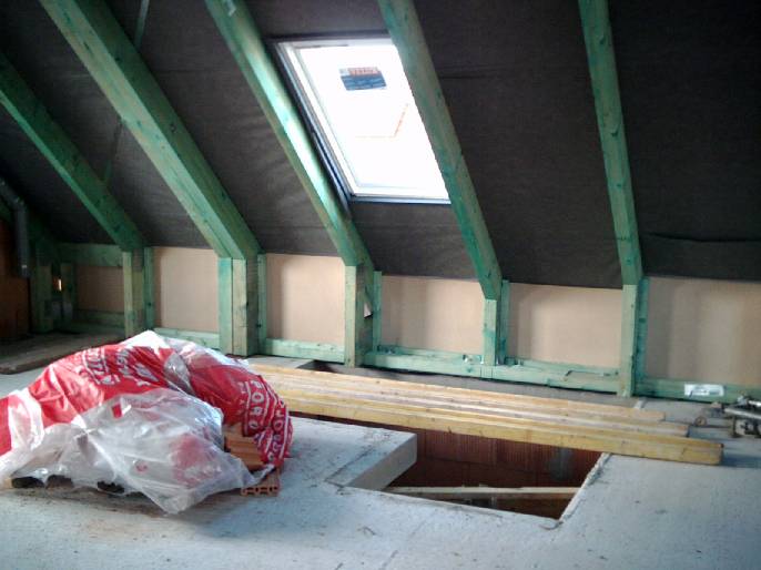 18. September 2005: Der Treppenaufgang müßte über sich ein Dachfenster haben, dieses fehlt aber noch! | ||