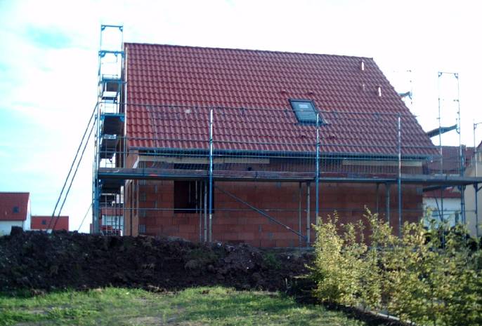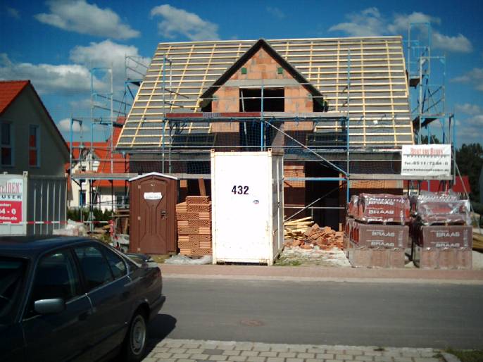 18. September 2005: Der Giebel ist schon fast fertig! Nächste Woche kommen die Ziegel! | ||