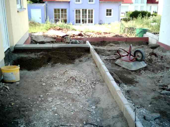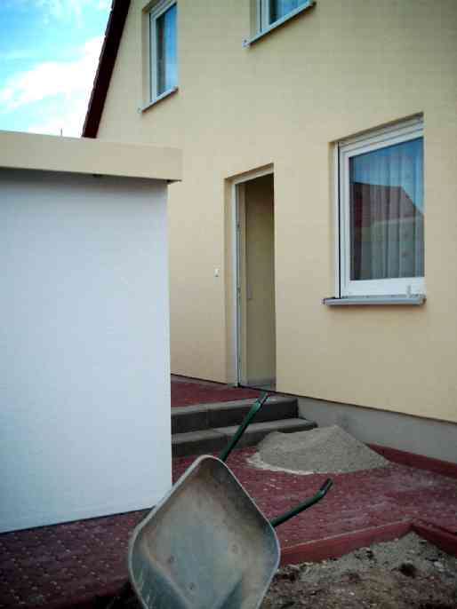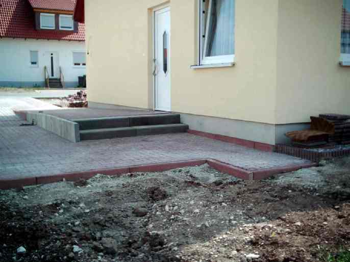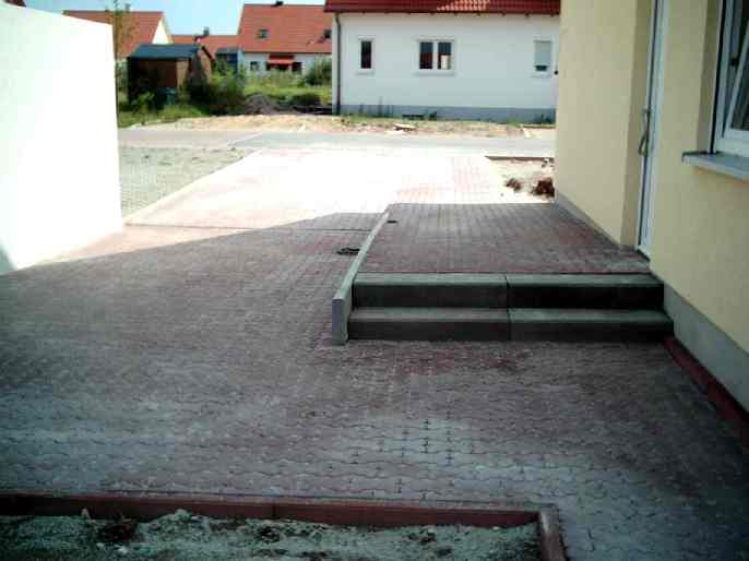 Juli 2006: Nach hinten habe ich zwei Stufen, ansonsten sollte das Pflaster stufenfrei verlegt sein! |