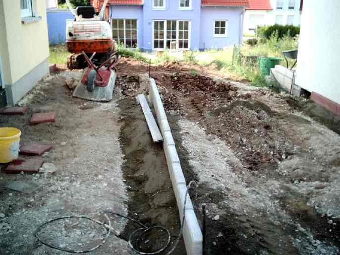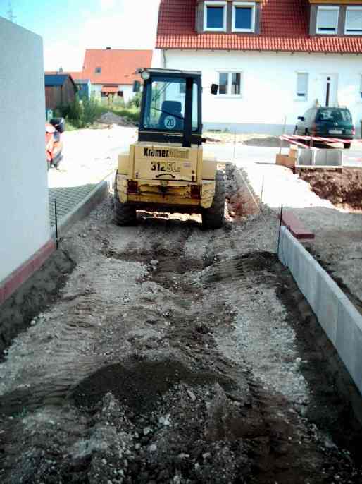 Juli 2006: Die Pflasterarbeiten für die Zufahrt haben begonnen! Bis Ende der Woche soll alles fertig sein! |