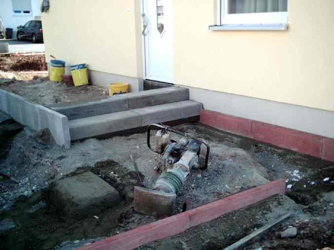 kommt der Pflasterer für die Zufahrts- samt Eingangspflasterung,