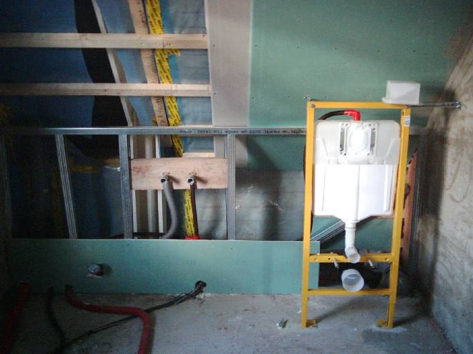 Im Bad geht der Trockenbau vorwärts, wird aber nicht