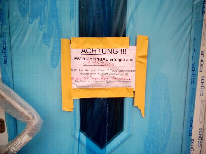 November 2005: Im Haus ist es durch das fehlende Lüften (der Estrich will es so) sehr feucht geworden! |