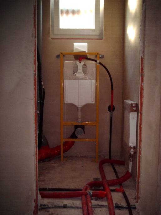 05. November 2005: Blick auf das Gäste-WC, mit Heizung und Installationsvorbau! |