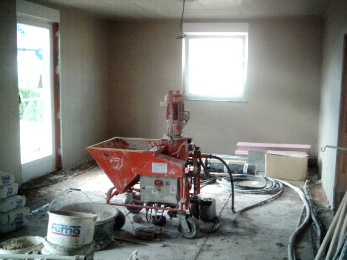 Anbringen des Putzes! Es ist übrigens dabei eine ganz schöne