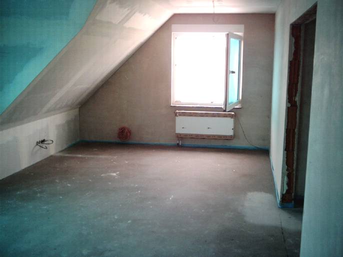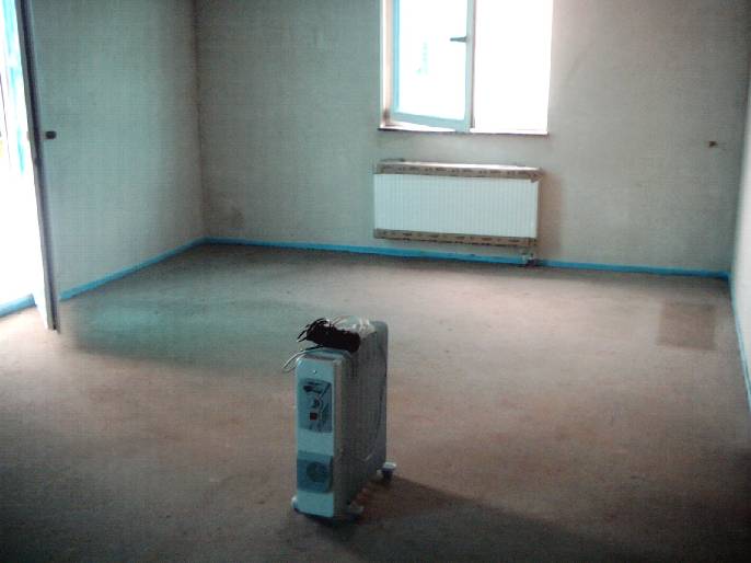Dezember 2005: Das Wohnzimmer, noch ohne Fliesen! Der Heizkörper