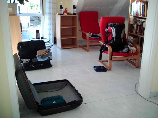 Der rote Rucksack wird die nächsten beiden Wochen mein ständiger Begleiter!