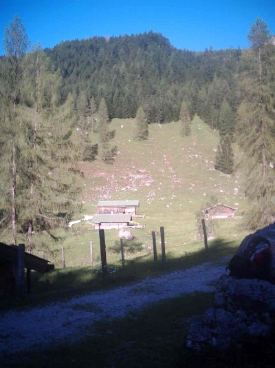 Auf der ersten Flachebene liegt eine kleine Alm!