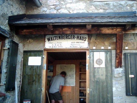 Der Eingang des Waltenberger Hauses! Einzigartig: Der Hüttenwirt