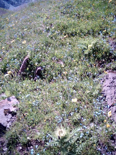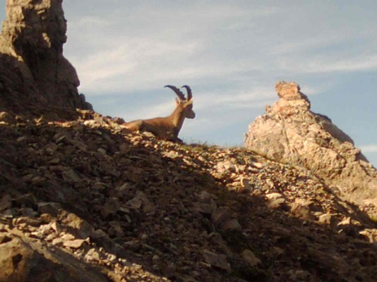 Mitten auf unserem Weg ruhte ein Steinbock! Da man vorsichtig sein muß, gingen wir langsam weiter!