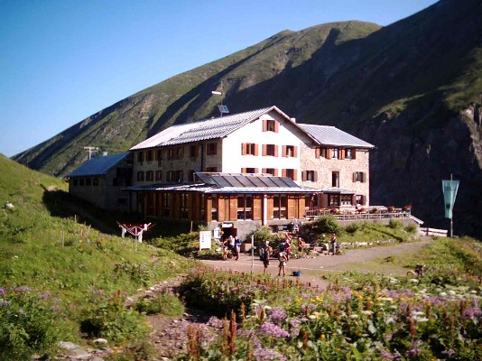 Schon ist die Kemptner Hütte zu sehen! Es ist bergabwärts auch ziemlich windig!