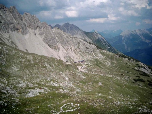 In der Mitte ist die Hermann-v.-Barth-Hütte schon zu sehen! Sie befindet sich in Österreich!