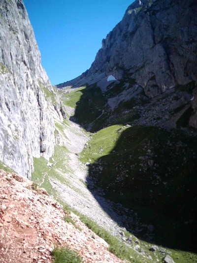Fast schon oben, hat man einen Überblick des bereits begangenen Aufstiegs!