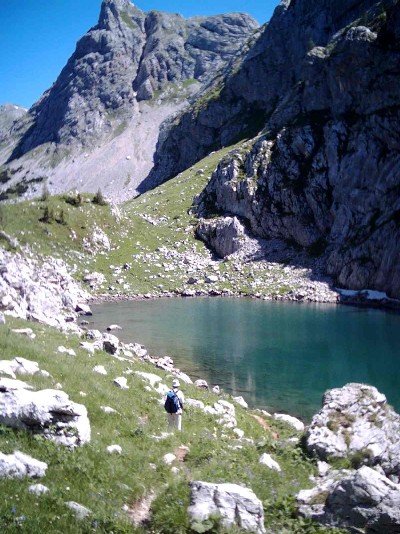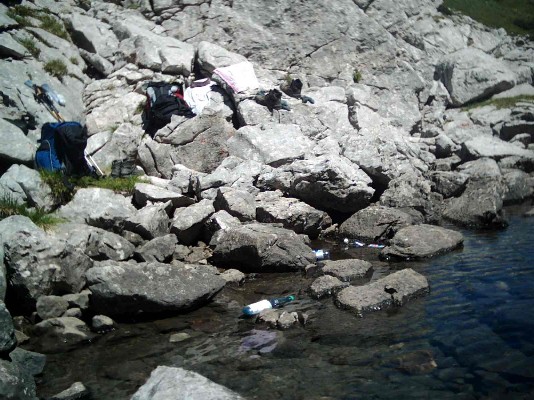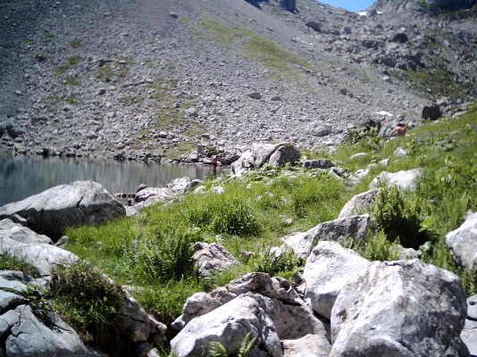 Nicht so gut zu sehen, aber 3 Menschen haben tatsächlich im Gebirgssee gebadet!