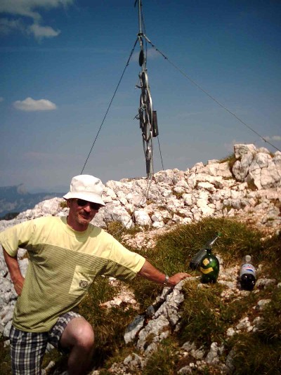 Das Gipfelkreuz des Wagendrischelhorns. Unsere "Verpflegung" haben wir auch schon für die folgende Pause ausgepackt!