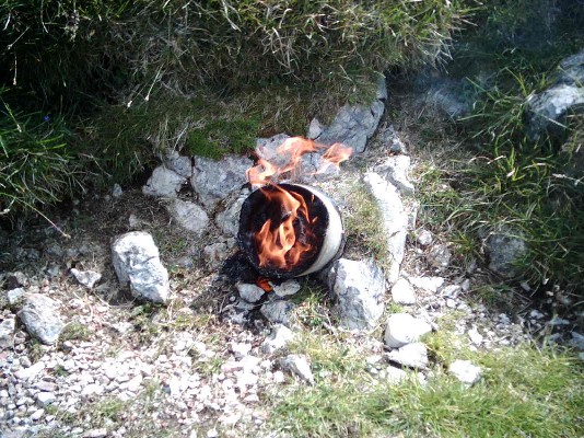 Hier brennt ein Markierungsfeuer, ein Überrest von der Sonnwendfeier!