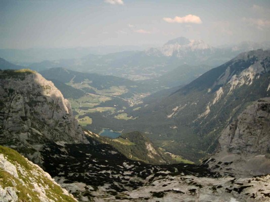 Der Hintersee und ein Ausläufer des Hochkalters noch vor dem Watzmann ist zu sehen!