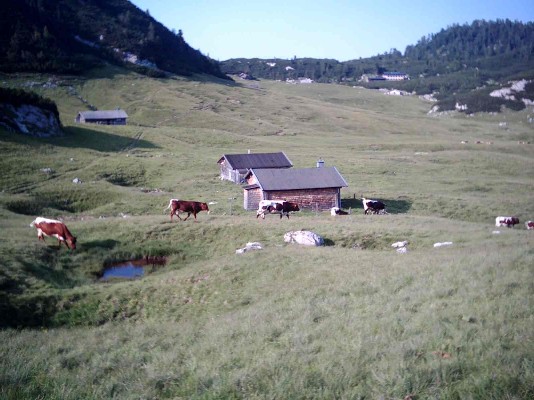 Kurz vor der Hüttenankunft kehren auch die Kühe vom Berg zurück!