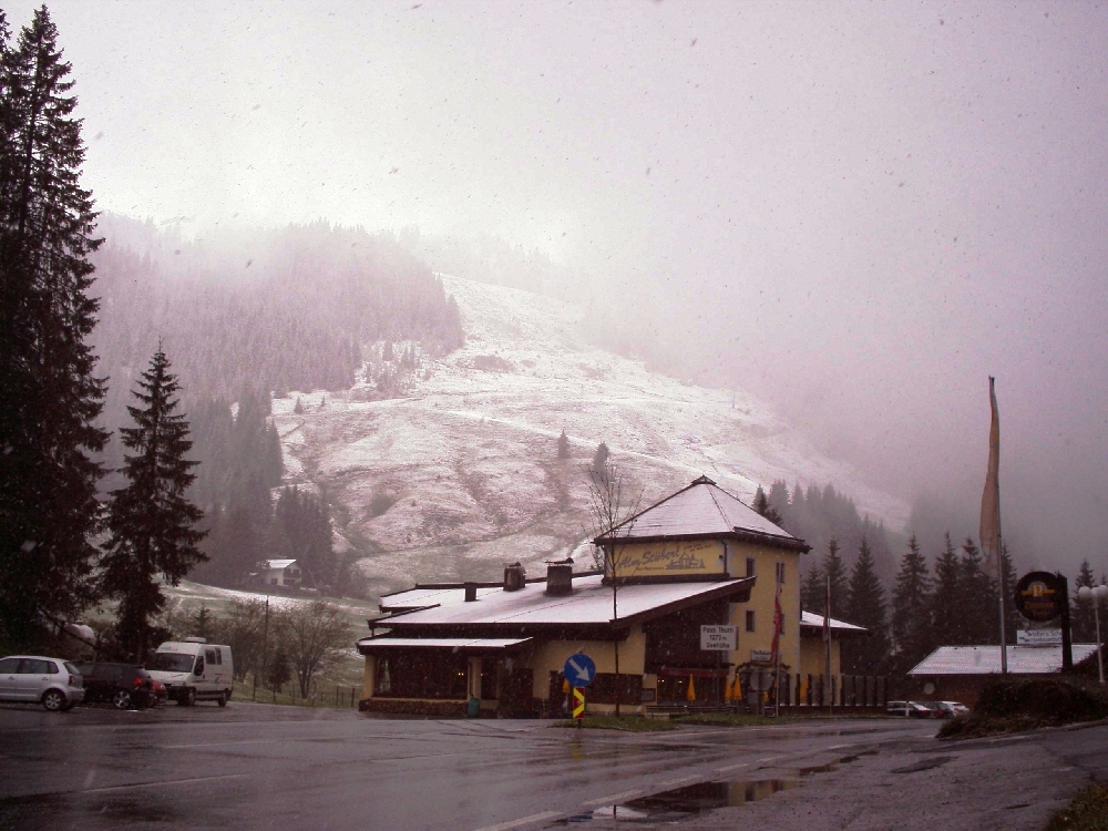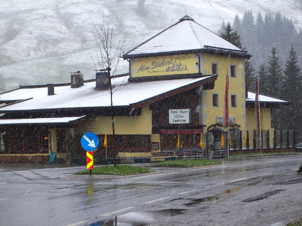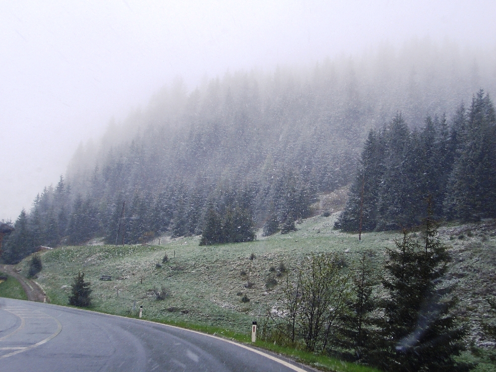 Schnee hat's im Mai reichlich! Bei unserer Rückfahrt waren es dann auch nur um die 1 Grad!