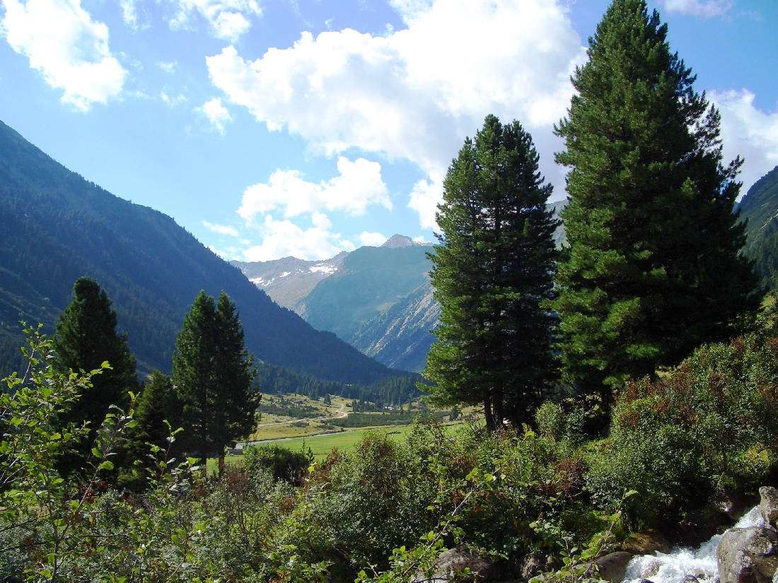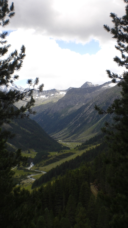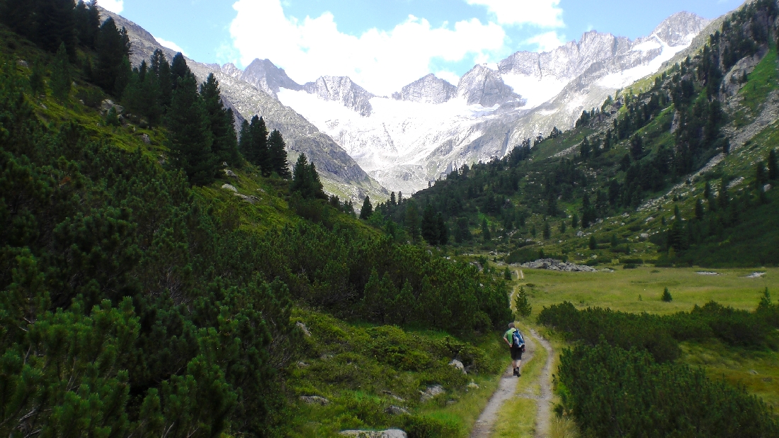 Der Blick geht ins Krimmler Achental! Das Wetter ist sonnig und nur leicht bewölkt!
