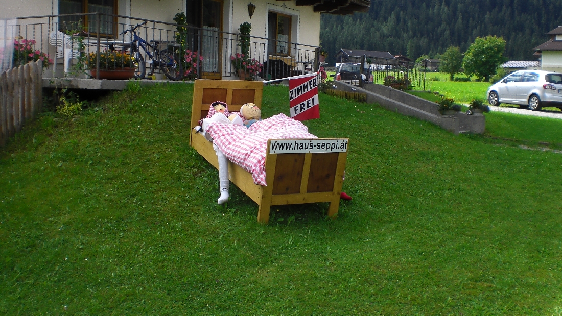 Zu Werbezwecken hat die Pension Trojer im Garten ein Kunstwerk erschaffen!